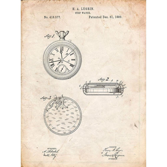 PP940-Vintage Parchment Lemania Swiss Stopwatch Patent Poster Black Modern Wood Framed Art Print with Double Matting by Borders, Cole