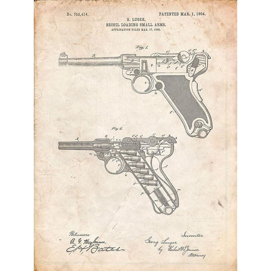 PP947-Vintage Parchment Luger Pistol Patent Poster Black Modern Wood Framed Art Print with Double Matting by Borders, Cole