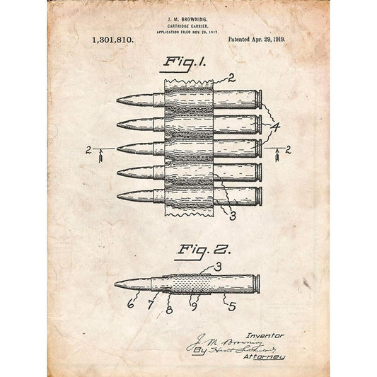 PP948-Vintage Parchment Machine Gun Bullet Carrier Belt Patent Poster Black Modern Wood Framed Art Print with Double Matting by Borders, Cole
