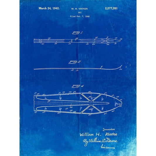 PP955-Faded Blueprint Metal Skis 1940 Patent Poster Black Modern Wood Framed Art Print with Double Matting by Borders, Cole