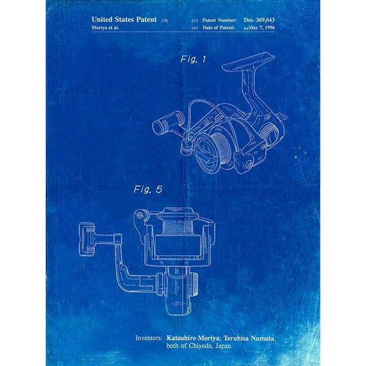 PP973-Faded Blueprint Open Face Spinning Fishing Reel Patent Poster Black Modern Wood Framed Art Print with Double Matting by Borders, Cole