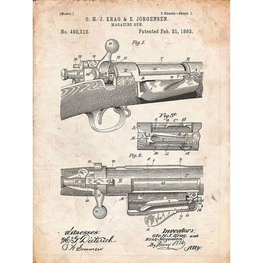 PP913-Vintage Parchment Krag JÃrgensen Repeating Rifle Patent Print Black Modern Wood Framed Art Print with Double Matting by Borders, Cole
