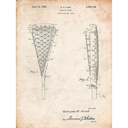 PP915-Vintage Parchment Lacrosse Stick 1936 Patent Poster Black Modern Wood Framed Art Print with Double Matting by Borders, Cole