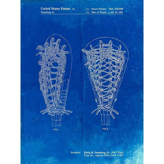 PP916-Faded Blueprint Lacrosse Stick Patent Poster Black Modern Wood Framed Art Print with Double Matting by Borders, Cole