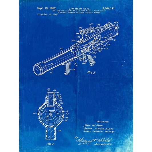 PP952-Faded Blueprint Mattel Toy Pop Gun Patent Poster Black Modern Wood Framed Art Print with Double Matting by Borders, Cole