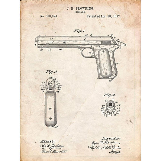 PP770-Vintage Parchment Colt Automatic Pistol of 1900 Patent Poster Black Modern Wood Framed Art Print with Double Matting by Borders, Cole