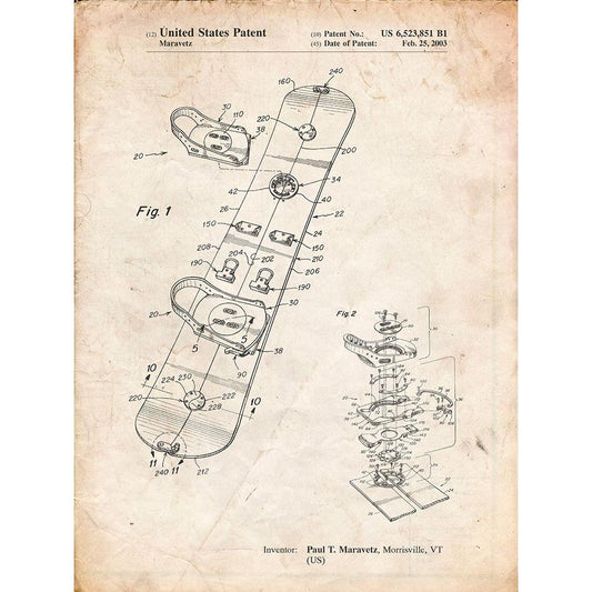 PP760-Vintage Parchment Burton Touring Snowboard Patent Poster Black Modern Wood Framed Art Print with Double Matting by Borders, Cole