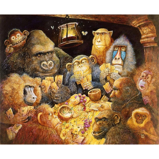 Noahs Poker Night Black Modern Wood Framed Art Print with Double Matting by Bell, Bill
