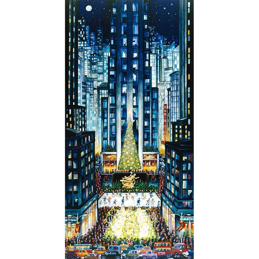 Rockefeller Christmas Black Modern Wood Framed Art Print with Double Matting by Bell, Bill
