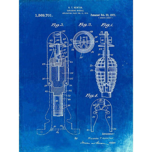 PP12-Faded Blueprint Explosive Missile Patent Poster Black Modern Wood Framed Art Print with Double Matting by Borders, Cole