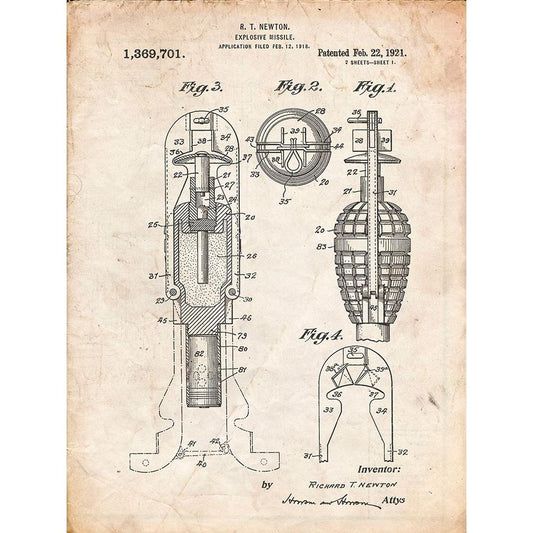 PP12-Vintage Parchment Explosive Missile Patent Poster Black Modern Wood Framed Art Print with Double Matting by Borders, Cole