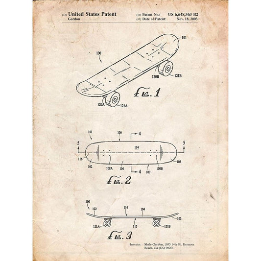 PP17-Vintage Parchment Double Kick Skateboard Patent Poster Black Modern Wood Framed Art Print with Double Matting by Borders, Cole