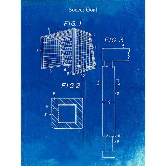 PP63-Faded Blueprint Soccer Goal Patent Poster Black Modern Wood Framed Art Print with Double Matting by Borders, Cole
