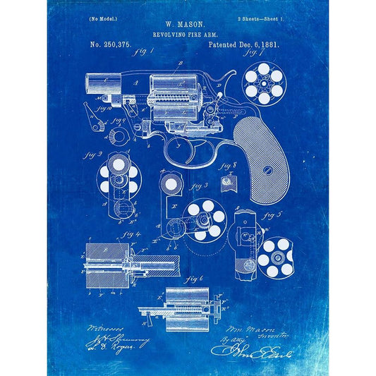 PP5-Faded Blueprint Colt M1889 Revolver Poster Black Modern Wood Framed Art Print with Double Matting by Borders, Cole
