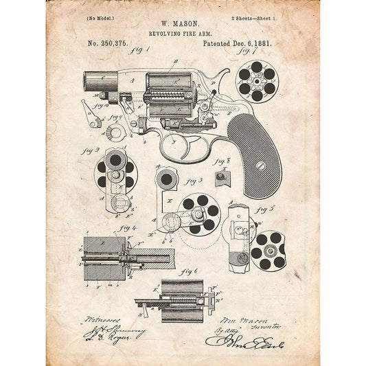PP5-Vintage Parchment Colt M1889 Revolver Poster Black Modern Wood Framed Art Print with Double Matting by Borders, Cole