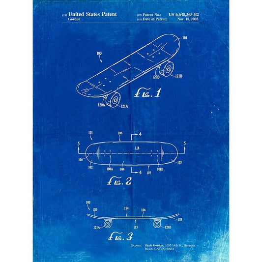 PP17-Faded Blueprint Double Kick Skateboard Patent Poster Black Modern Wood Framed Art Print with Double Matting by Borders, Cole