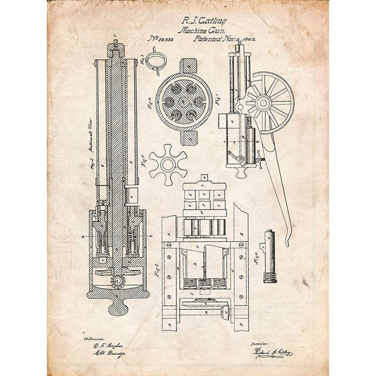 PP23-Vintage Parchment Gatling Gun Patent Poster Black Modern Wood Framed Art Print with Double Matting by Borders, Cole