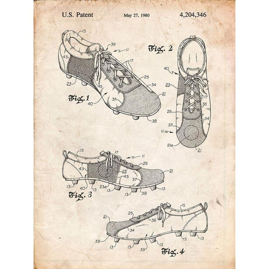 PP55-Vintage Parchment Soccer Cleats Poster Black Modern Wood Framed Art Print with Double Matting by Borders, Cole
