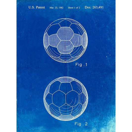 PP62-Faded Blueprint Leather Soccer Ball Patent Poster Black Modern Wood Framed Art Print with Double Matting by Borders, Cole