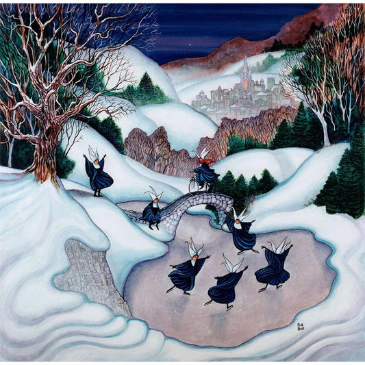 Skating Nuns 2 Black Modern Wood Framed Art Print with Double Matting by Bell, Bill