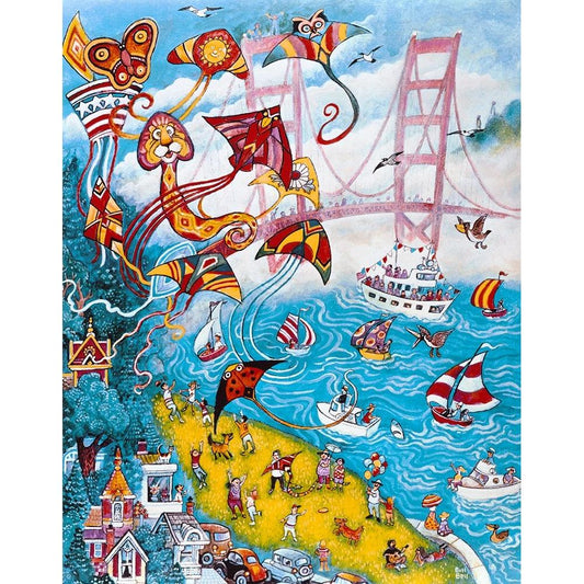 Goldengate Kites Black Modern Wood Framed Art Print with Double Matting by Bell, Bill