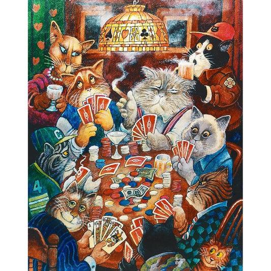 Poker Cats Black Modern Wood Framed Art Print with Double Matting by Bell, Bill