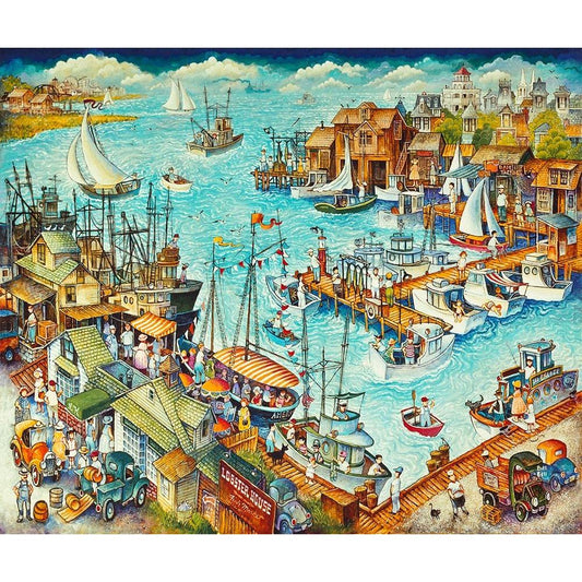 Marina / Cape May Black Modern Wood Framed Art Print with Double Matting by Bell, Bill