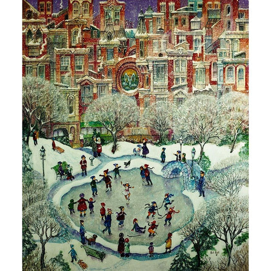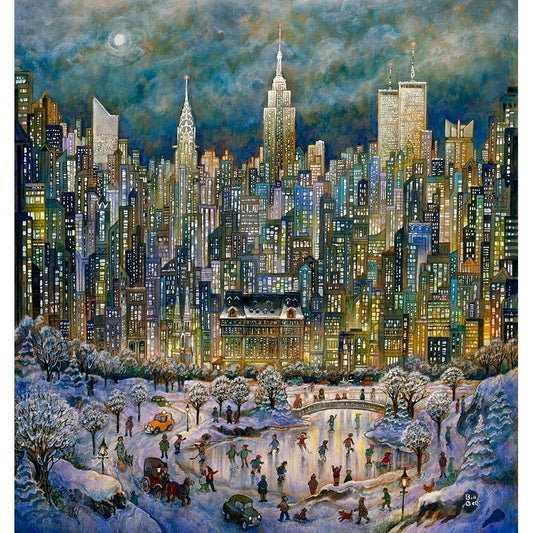 Snowtime In New York Black Modern Wood Framed Art Print with Double Matting by Bell, Bill
