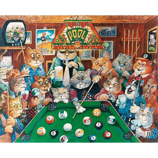 The Hustler ( Pool Cats ) Black Modern Wood Framed Art Print with Double Matting by Bell, Bill