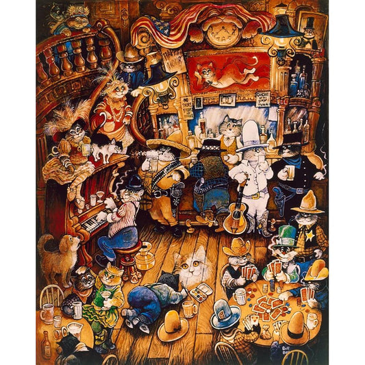 Cool Cats Black Modern Wood Framed Art Print with Double Matting by Bell, Bill