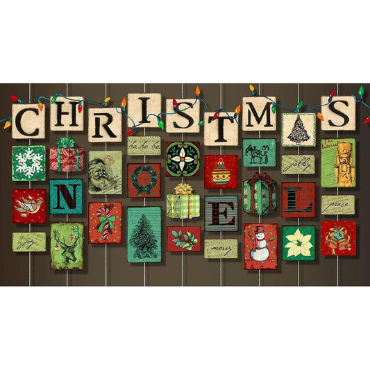 Christmas on Strings Black Modern Wood Framed Art Print with Double Matting by Art Licensing Studio