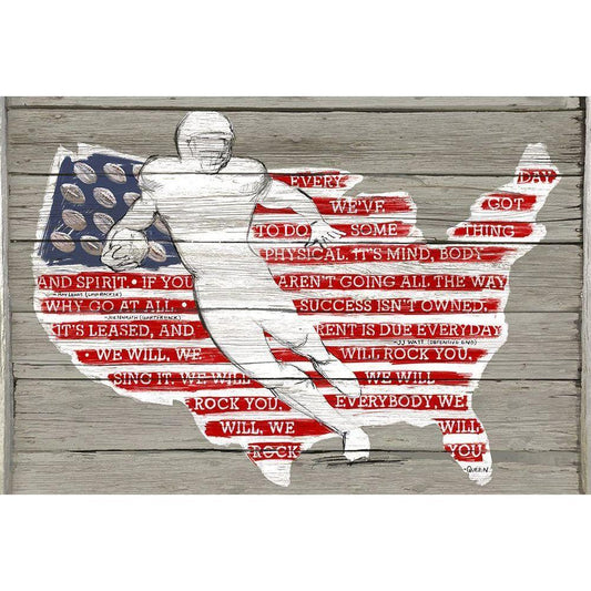 USA Flag and Runningback Black Modern Wood Framed Art Print with Double Matting by Art Licensing Studio