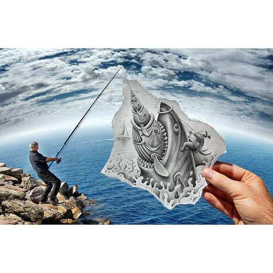 Pencil Vs Camera 59 - Scary Shark Black Modern Wood Framed Art Print with Double Matting by Heine, Ben
