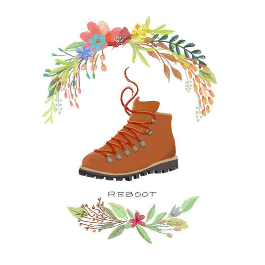 Sweet Adventure Boot Black Modern Wood Framed Art Print with Double Matting by Art Licensing Studio