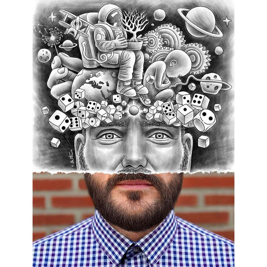 Human Big Bang - Pencil Vs Camera Black Modern Wood Framed Art Print with Double Matting by Heine, Ben