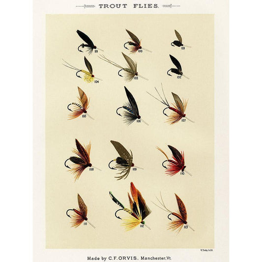 Trout Fishing Flies VII from Favorite Flies and Their Histories White Modern Wood Framed Art Print by Marbury, Mary Orvis
