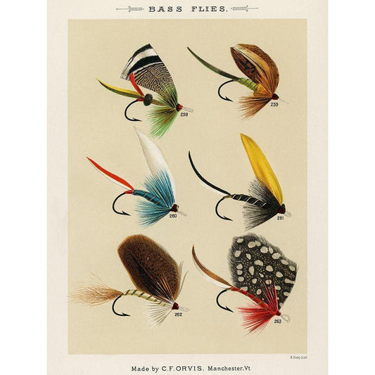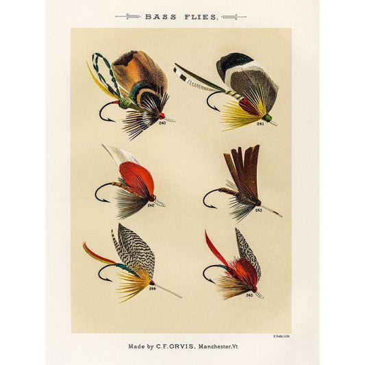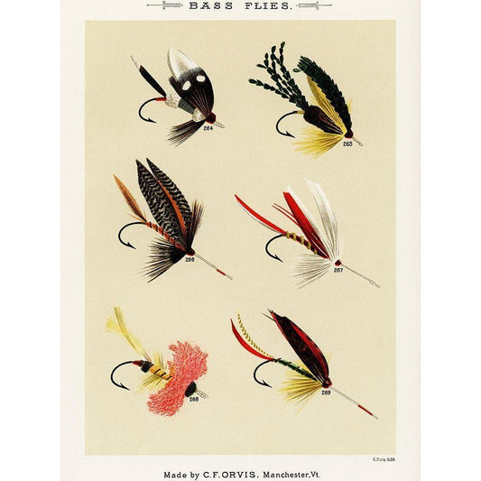 Bass Fishing Flies VI from Favorite Flies and Their Histories White Modern Wood Framed Art Print by Marbury, Mary Orvis
