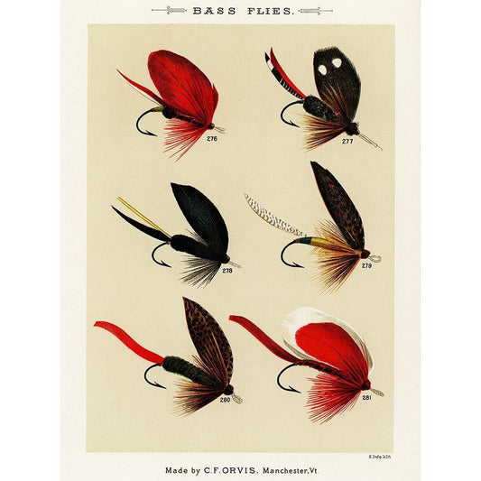 Bass Fishing Flies IX from Favorite Flies and Their Histories White Modern Wood Framed Art Print by Marbury, Mary Orvis