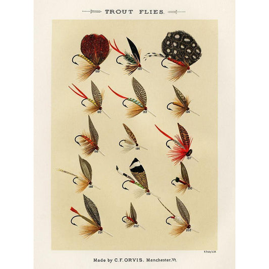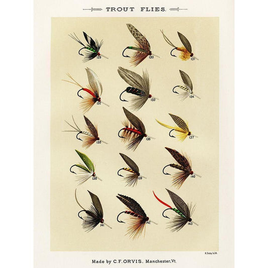 Trout And Bass Fishing Flies from Favorite Flies and Their Histories White Modern Wood Framed Art Print by Marbury, Mary Orvis