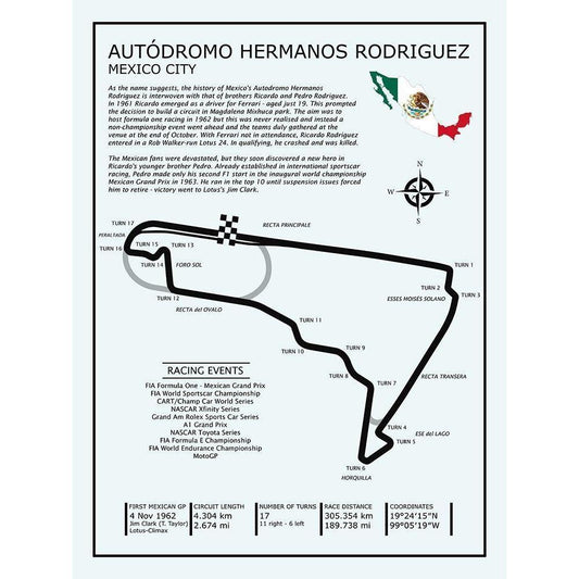 Autodromo Hermanos Rodriguez White Modern Wood Framed Art Print by Rogan, Mark