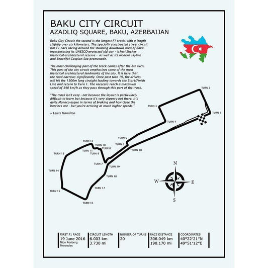 Baku City Circuit BL White Modern Wood Framed Art Print by Rogan, Mark