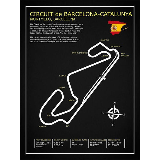 Barcelona-Catalunya Circuit BL White Modern Wood Framed Art Print by Rogan, Mark
