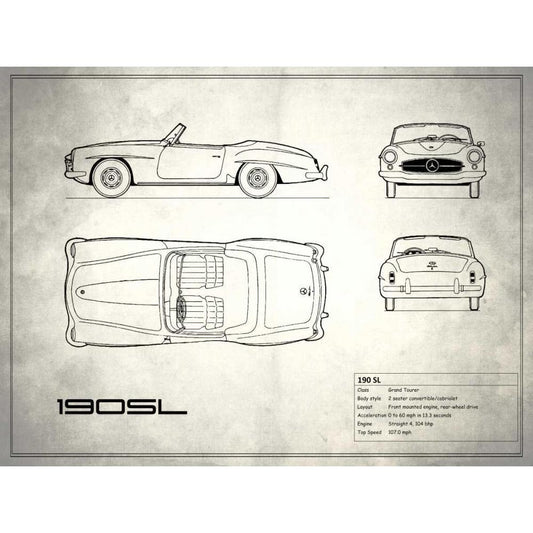 Mercedes 190-SL White White Modern Wood Framed Art Print by Rogan, Mark