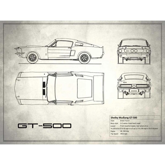 Shelby Mustang GT500 White White Modern Wood Framed Art Print by Rogan, Mark