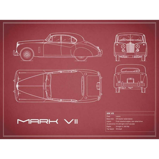 Jaguar MkVII-Maroon White Modern Wood Framed Art Print by Rogan, Mark