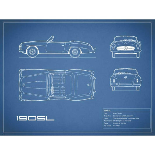 Mercedes 190-SL-Blue White Modern Wood Framed Art Print by Rogan, Mark