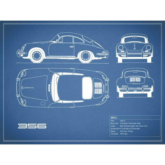 Porsche 356C-Blue White Modern Wood Framed Art Print by Rogan, Mark