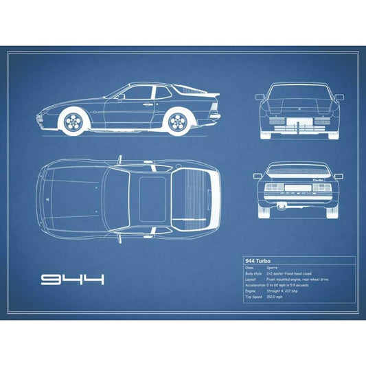 Porsche 944 Turbo-Blue White Modern Wood Framed Art Print by Rogan, Mark