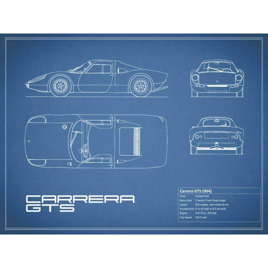 Porsche Carrera GTS-Blue White Modern Wood Framed Art Print by Rogan, Mark