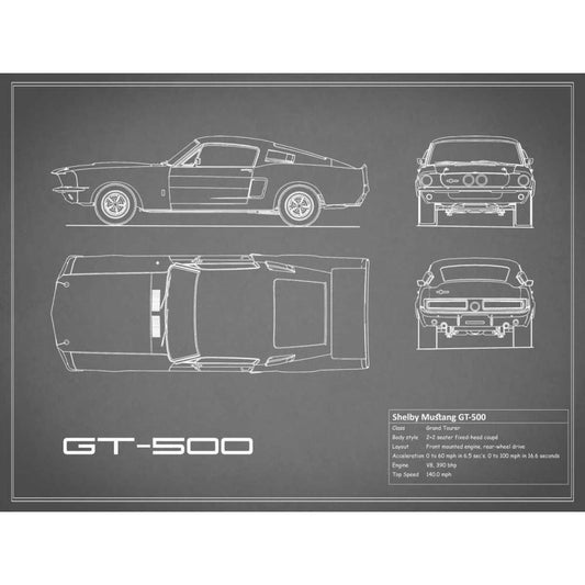 Shelby Mustang GT500-Grey White Modern Wood Framed Art Print by Rogan, Mark